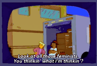 Look at all those feminists. You thinkin' what I'm thinkin'? Yeah! Yeah! All right! All right! TV, have you turned on me too?