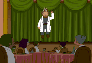Our last presentation comes from our oldest member-- Professor Hubert Farnsworth. Professor? just a second. just a second. Pencils down, prune face. Oh, yes, here I am.
