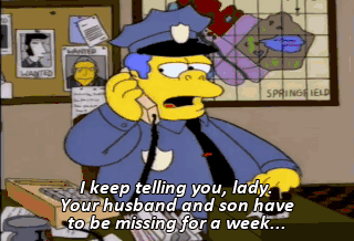 I keep telling you, lady. Your husband and son have to be missing for a week... before we can start searching. I'd like to help sooner. I would, but we're very, very busy down here. Heesh! King me.