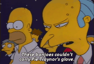 These banjoes couldn't carry Pie Traynor's glove. Big Bill McCloskey coming up. As soon as he pops out, we'll go right to the post-game show.