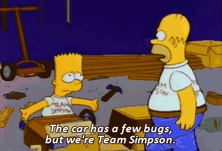 The car has a few bugs, but we're Team Simpson. Dad, I love you, but you taught me to win. When did I teach you that? I picked it up somewhere.