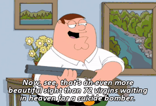 Now, see, that's an even more beautiful sight than 72 virgins waiting in heaven for a suicide bomber. Here I am!