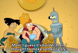Man, I guess it's harder than I thought to make someone cry. You did your best, Bender. Up yours, bimbo!