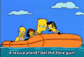 A rescue plane! Get the flare gun! This ain't one of your church picnic flare gun firings, Flanders. This is the real thing.