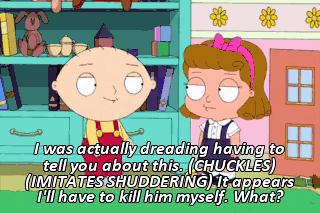 I was actually dreading having to tell you about this. (CHUCKLES) (IMITATES SHUDDERING) It appears I'll have to kill him myself. What?
