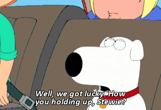 Well, we got lucky. How you holding up, Stewie? Um... I feel right, Brian. I feel right. Are you sure Aunt Carol won't mind us using her house?