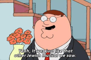 Yeah, It was just like that other Jewish musical we saw. A fiddler on the roof sounds crazy, no? but here in our little village of Anatevka you might say each one of us... Kahn! Kahn!