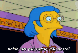Ralph, are you eating your paste? No, Miss Hoover. Good. Now sprinkle your sparkles on your paste. Lisa, you're not sprinkling your sparkles. Shove it.