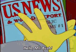 Hello, Mr. Bush! George, this is a neighborhood boy, Bart Simpson. He came over to say hi.