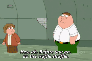 Hey, uh, Before you go, do the truffle shuffle. Oh, come on! Do the truffle shuffle.