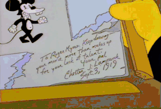 "Your moxie more than makes up for your lack of talent. Your pal, Chester J. Lampwick. September 3, 1919." Okay. Maybe my dad did steal Itchy.