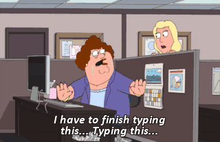 I have to finish typing this... Typing this... (GROANS) That's it, I'm taking you home.
