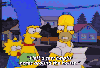 "I left a few helpful notes around the house." Ah, Come-- Gee! "Put food in me." I'll take that.