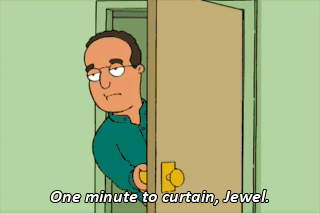 One minute to curtain, Jewel.