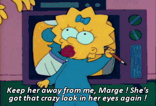 Keep her away from me, Marge ! She's got that crazy look in her eyes again !