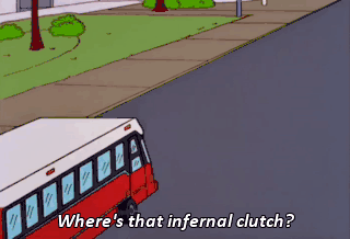 Where's that infernal clutch? Wait, wait. I'll get it. Give it some gas, Grandpa.