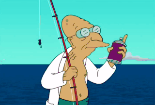 Uh, oh. I'm so into you. Oh, my! Hey, Bender! I just caught a fish this big.
