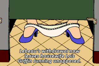 Lebeau's withdrawal now leaves housewife Lois Griffin running unopposed.