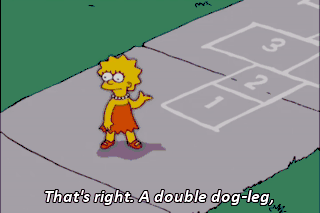That's right. A double dog-leg, hamstring-knotting, hop-way to hell. LISA: What insane kangaroo dreamed this fevered nightmare? Behold! Ladies, grab your pebbles.