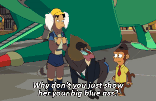 Why don't you just show her your big blue ass? Oh, I'm getting to that. (CLICKS TONGUE) Call me. Oh, my gosh. Amy? Amy Wong? Guenter? From Mars University? How have you been? Pretty good.