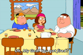 Oh, My God! You got fired? Way to go, Dad! Fight the machine!