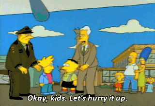Okay, kids. Let's hurry it up. Good-bye, Simpsons. Thank you for your hospitality.