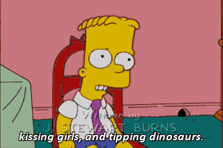 kissing girls, and tipping dinosaurs.