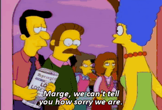 Marge, we can't tell you how sorry we are. You have our deepest condol-diddly-olences. I'm sorry. I-i'm just nervous. I didn't mean any disrespect.