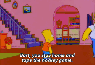 Bart, you stay home and tape the hockey game. You're here, aren't you?