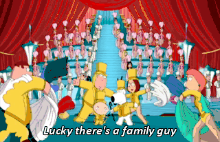 Lucky there's a family guy Lucky there's a man who positively can do All the things that make us Laugh and cry He's a family guy