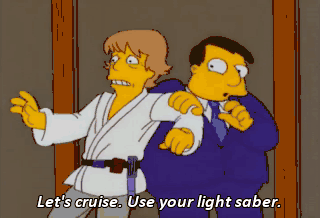 Let's cruise. Use your light saber. What, and break it? You know, George Lucas makes me pay for these. Take him. He's the one you want. Not the hair! Back off, you freakin' dweebs.