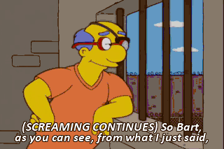 (SCREAMING CONTINUES) So Bart, as you can see, from what I just said, everyone is a winner here. (BIRDS SQUAWKING) Huh? (GASPS)