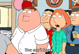 You can't leave. I have to, Peter. For me. I love you all. Aw. Somebody say something. Brian, wait! H-Hold on a second.