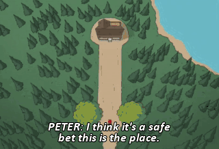 PETER: I think it's a safe bet this is the place. Well, this looks comfortable. (SIGHS) This is gonna be a relaxing weekend.