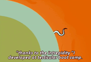 "thanks to the intrepidity "I developed at testicular boot camp.