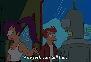 Any jerk can tell her. Bender has a little more up his sleeve. I wuv my mommy.