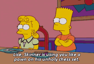 Lise, Skinner is using you like a pawn on his unholy chess set. On my chess set, the pawns are all Hamburglars. (UPBEAT MUSIC PLAYING) I'm so happy with my evil plan