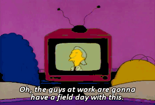 Oh, the guys at work are gonna have a field day with this. Cheer up, Homer. At least they let you go. Gentlemen, gentlemen. Fraulein, please.