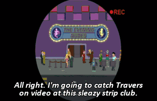 All right. I'm going to catch Travers on video at this sleazy strip club.