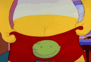 Ow-ohh, jeez ! Homer, that suit doesn't leave much to the imagination. Heads up, kids. I'm moving the seat back. It is back.
