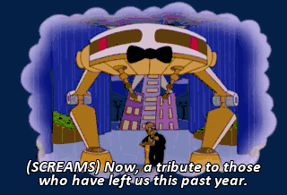 (SCREAMS) Now, a tribute to those who have left us this past year.