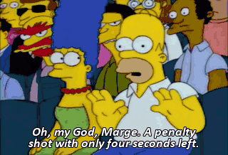Oh, my God, Marge. A penalty shot with only four seconds left. It's your child versus mine! The winner will be showered with praise! The loser will be taunted and booed until my throat is sore!