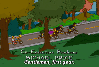 Gentlemen, first gear. (GROANING) Oh, man, I sure wish I had a ten-speed bike. A ten-speed bike? What did your mother say? She said, "Yes." MARGE: I said no!