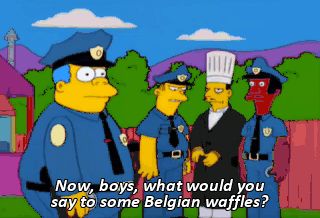 Now, boys, what would you say to some Belgian waffles? Actually, I was in the mood for some frittatas. Ha! Lou and his frittatas! Frittatas! Oh, he likes eggs.