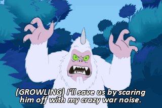 (GROWLING) I'll save us by scaring him off with my crazy war noise. (PURRING)