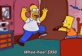 Whoo-hoo! $350. Now, I can buy 70 transcripts of Nightline. But, Dad-- Oh, well, he's happy.