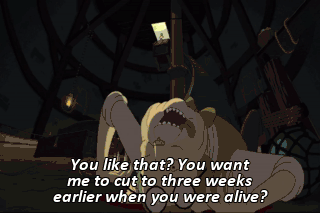 You like that? You want me to cut to three weeks earlier when you were alive? RICK: Whoa, Marty, You just purged.