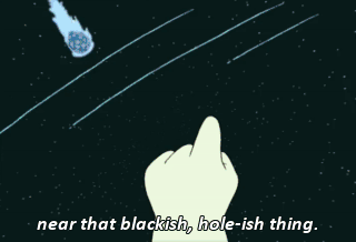 near that blackish, hole-ish thing. Hey, Leela, why'd you run off from dinner? I didn't run off. I had plenty of time to finish eating and stroll away while you were kissing Amy.