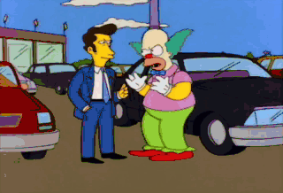 I want everything that's coming to Krusty the Clown, which is me, Krusty! Hey, it's Krusty, all right. Should I shoot him gangland style or execution style? Listen to your heart.