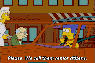 Please. We call them senior citizens. Oh, look! (ALL COOING) A dog? What a nice surprise. I'm gonna pet you raw!